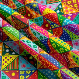Ткань с принтом "Печворк с огурцами" для креативных проектов и декора