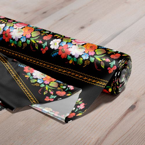 Ткань с принтом "Хохлома с инеем" для народных костюмов и декора
