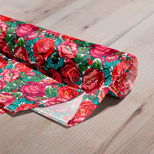 Ткань "Красные бутоны роз 12 см" для элегантного и романтичного пошива